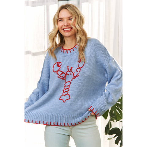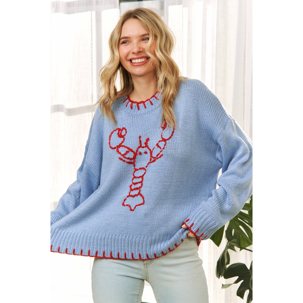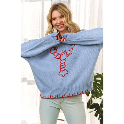Medium-weight soft knitting sweater - Lovely lobster knitting on front with relaxed fit design - Rib bands on bottom, neckline and sleeves - Contrast edge special stitches