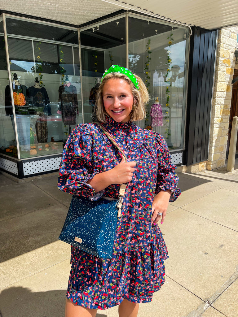 Navy Corduroy Ruffle Dress
